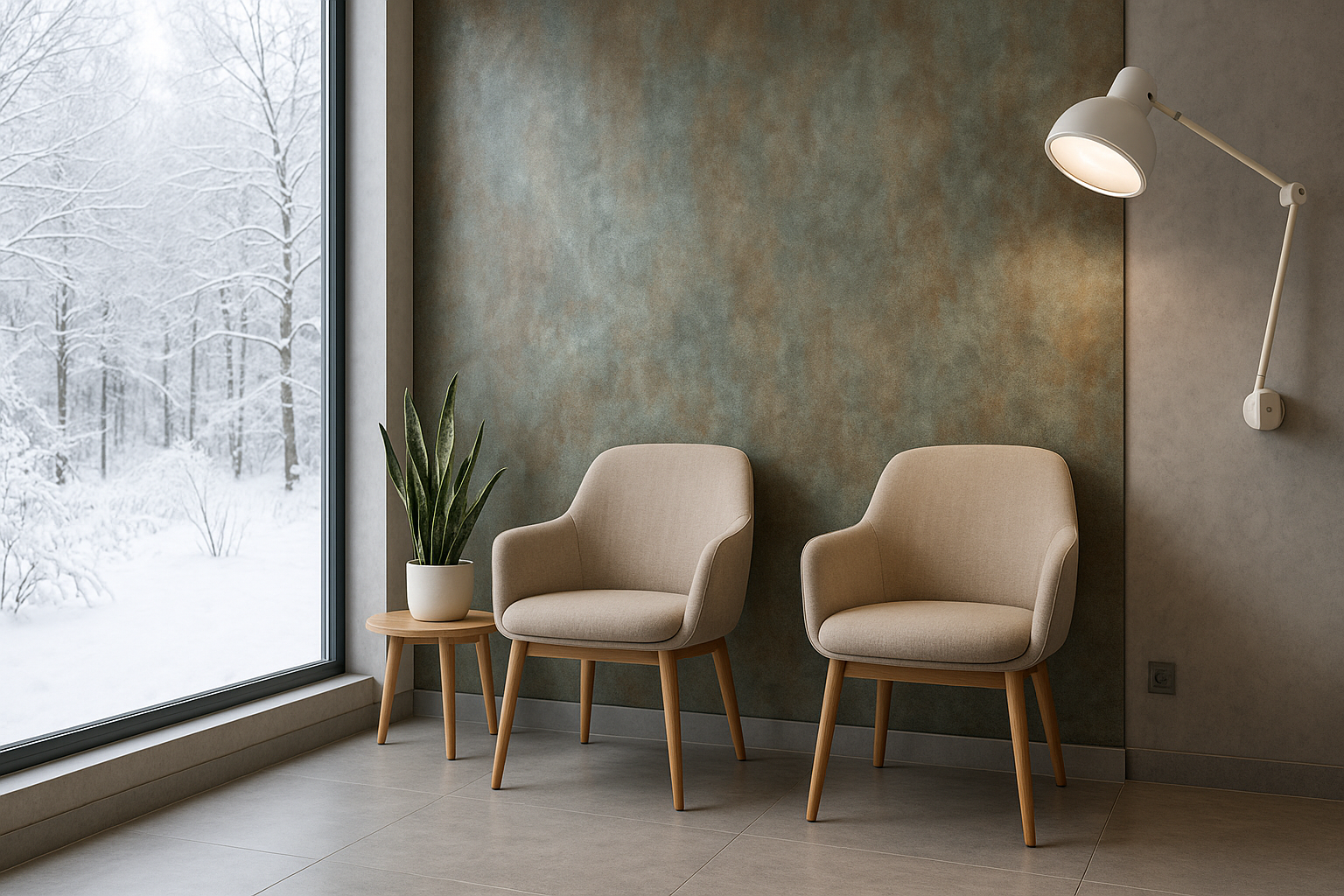 Oberflächenveredelung im Winter: Metalloptik, patinierte Beschichtungen und gesundes Design für Praxisräume in Hessen